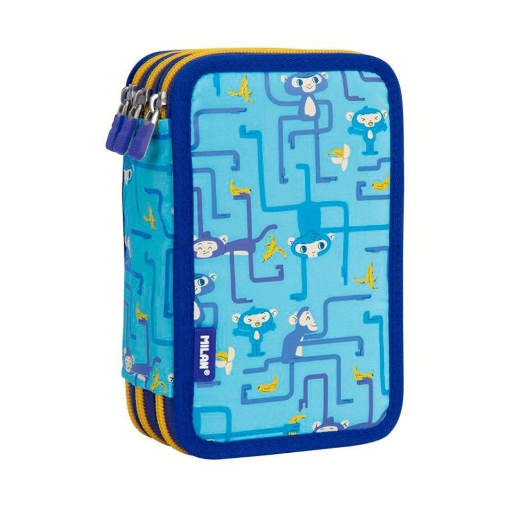 Piórnik piętrowy, dzięki któremu przybory szkolne będą zawsze uporządkowane i łatwo dostępne. Specjalna seria Tangled Monkeys, kolor niebieski.