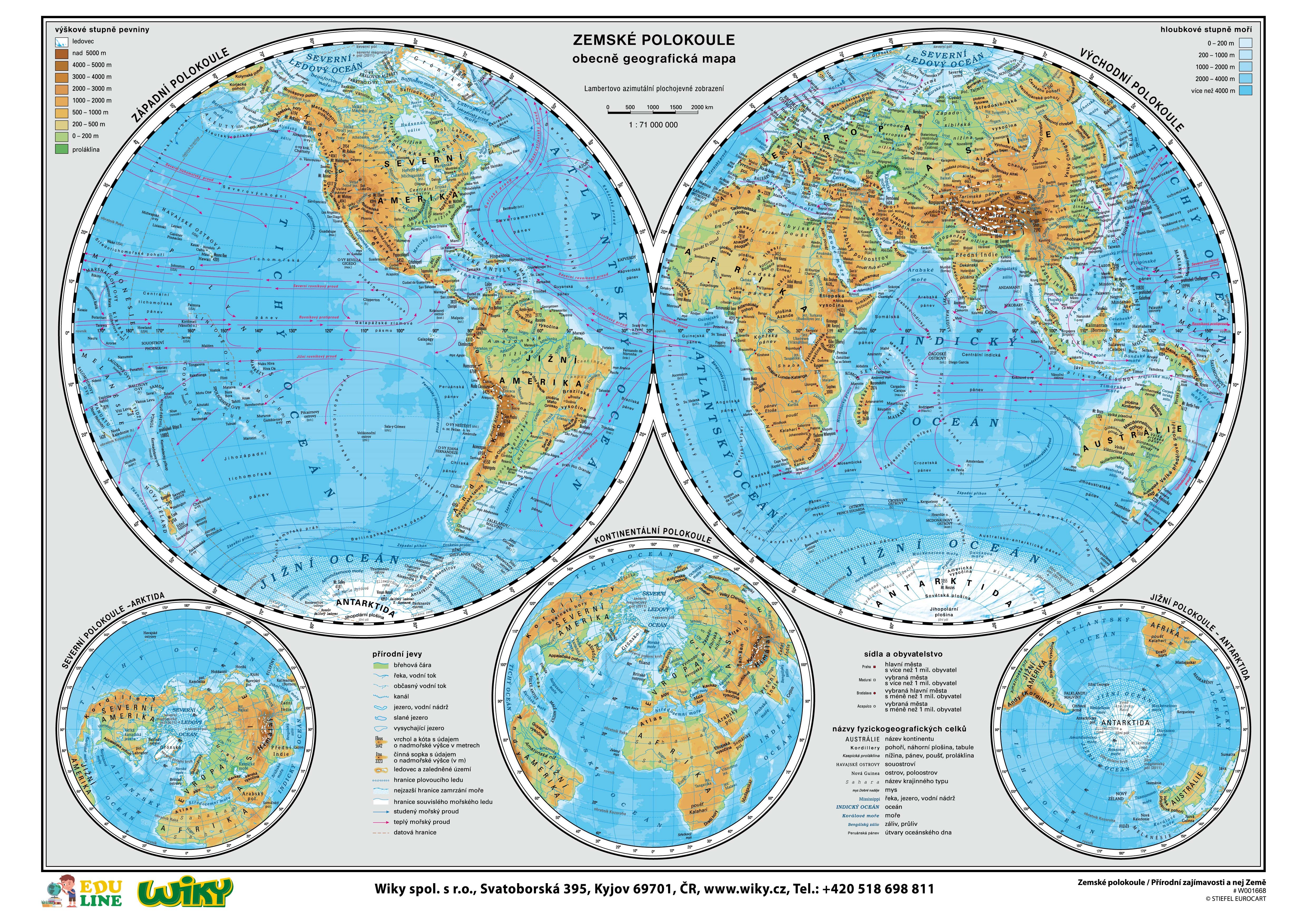 Oboustranná mapa zemské polokoule, rozměr: A3 prečítať celé