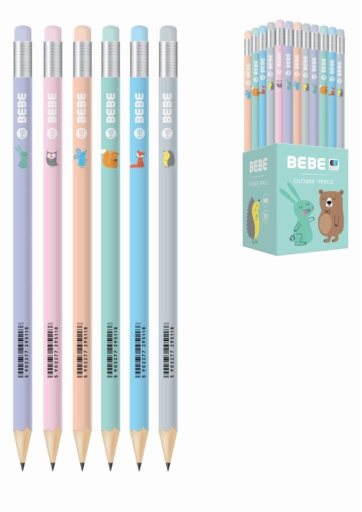 Opakowanie zbiorcze 72 sztuki.Ołówek HB. Okrągły profil. Zakończony kolorową gumką. Do wyboru 6 wzorów ze zwierzakami z serii BEBE. prečítať celé