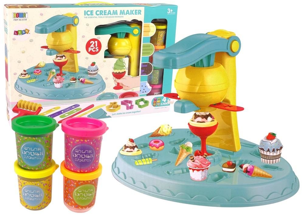 Ciastolina Lodziarnia 21 Elementów Zestaw Do Robienia Lodów i Deserów Stwórz Niesamowite Desery Lodowe ! Idealna propozycja dla wszystkich dzieci, które uwielbiają zabawę w kuchni i przygotowywanie przeróżnych słodkości. Najważniejszym składnikiem tego typu wyrobów jest dziecięca wyobraźnia !...