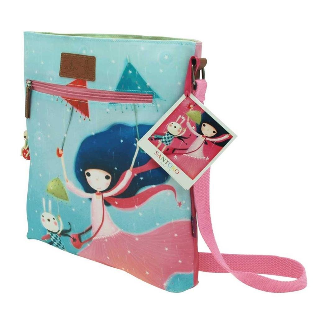 Praktyczne może być piękne! Torba na skos, posiada zewnętrzną kieszeń z suwakiem. Wykończona podszewką z wzorem. Część główna również posiada kieszeń na suwak. Torba może być noszona na skos, na miękkim pasku, długość paska można regulować. Do torby przymocowana jest zawieszka z królikiem....
