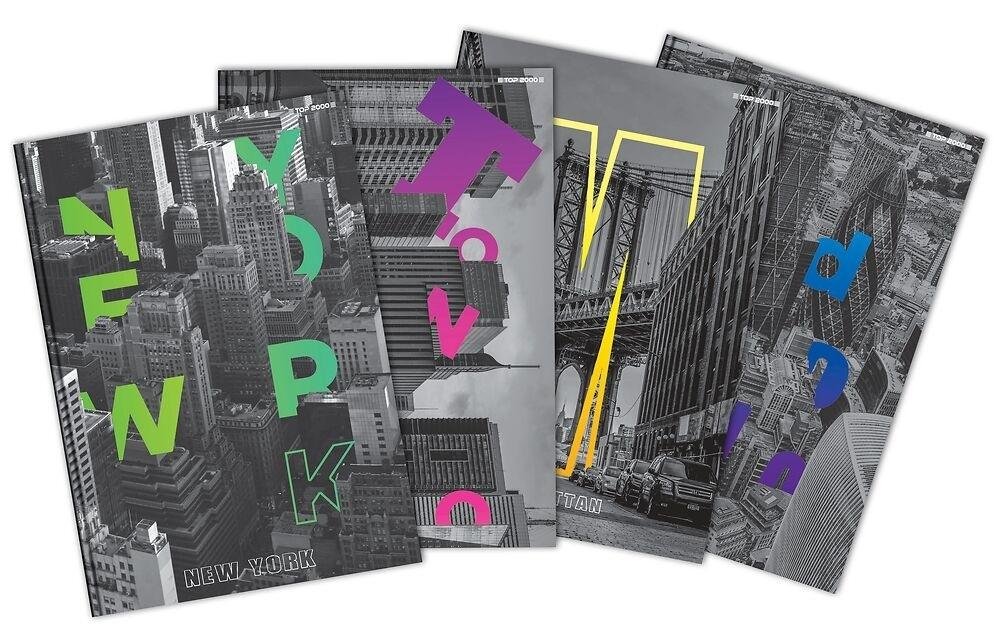 Opakowanie zbiorcze 4 sztuki.Wykończenie matową folią nadaje okładkom elegancji.Czarno-białe wizerunki miast z kolorowymi napisami są nowoczesne i uniwersalne.Papier o grubości 70 g/m2. prečítať celé