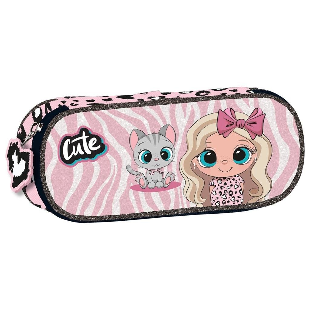 Jednokomorowy usztywniany piórnik zapinany na zamek z ozdobną zawieszką, którego wnętrze całkowicie wykończone jest podszewką.Wewnętrzna klapka posiada gumkę na 5 sztuk przyborów do pisania, dodatkowo w piórniku znajduje się klapka z gumką na 4 sztuki przyborów oraz kieszonką z siateczki zapinaną...