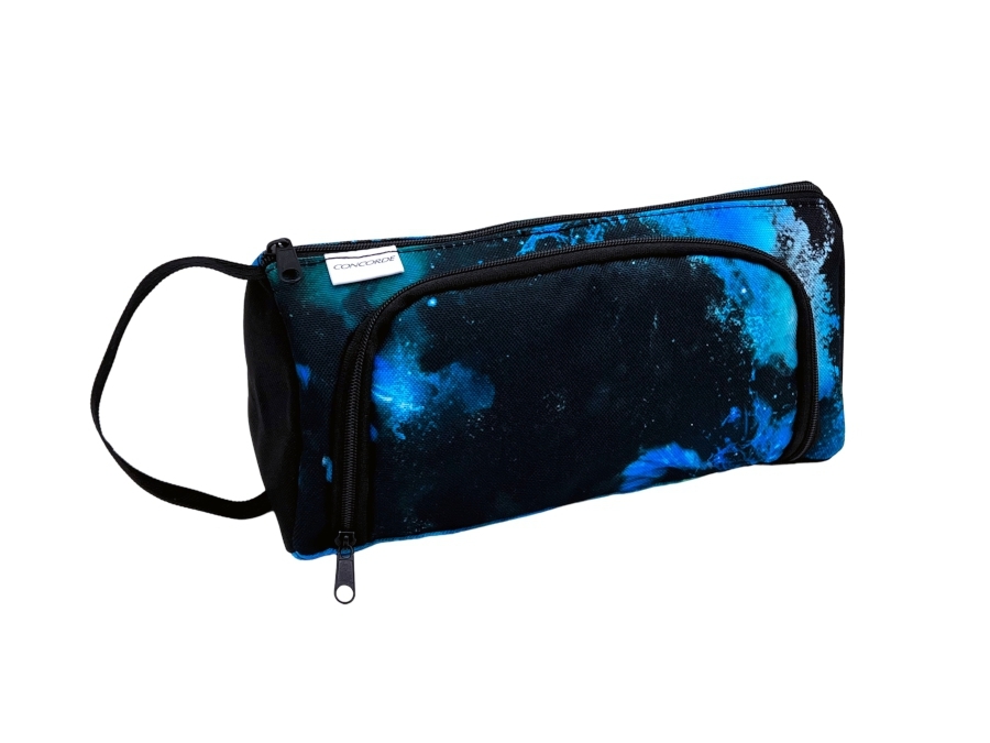 Designová taštička s abstraktním vzorem a postranní kapsičkou. Objemný odkládací prostor uzavíratelný na zip. Taštička je vhodná na kancelářské a školní potřeby, ale i kosmetiku nebo další nezbytnosti. Vnitřní odkládací prostor obsahuje tři malé otevřené kapsičky vhodné na malé drobnosti. Postranní kapsa uzavíratelná na zip disponuje 5 smyčkami na psací potřeby. Rozměr taštičky 22x8x10 cm.