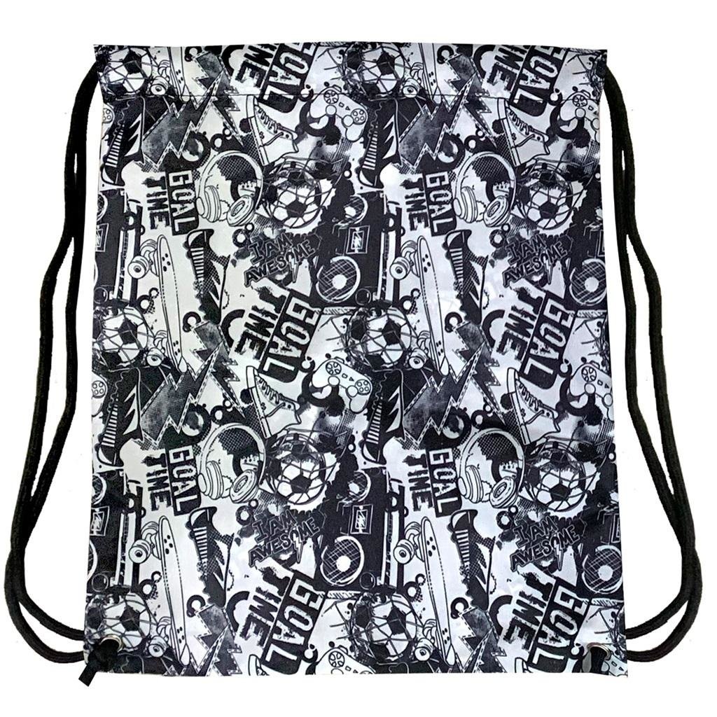 Poliestrowy worek na obuwie szkolne w kolorze czarnym z motywem piłki nożnej. prečítať celé