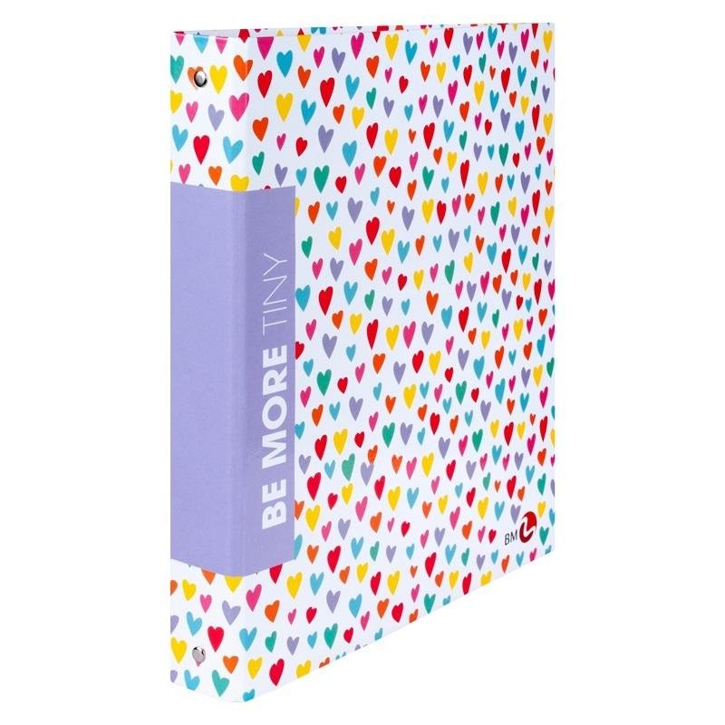 Kolekcja segregatorów Be More Tiny oznacza się przepięknymi okładkami ozdobionymi drobnymi wzorkami kwiatów, serduszek, animowanych zwierzątek. Kolekcja obejmuję różne wzory okładek sprzedawanych jako mix. Segregatory mają twarde, lakieroweane okładki , format A4, system spinania 4 ringowy