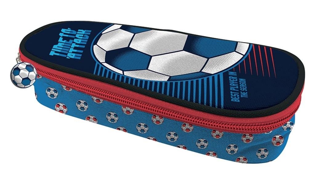 Owalny piórnik szkolny z klapką to niezbędny przedmiot uczniów. Wewnątrz na klapce znajdują się gumowe uchyty na przybory do pisania oraz skrzydło, na którym jest kieszonka z siateczki zamykana zamkiem błyskwicznym i kolejne gumowe uchwyty. Komora główna jest pojemna, korpus dodatkowo usztywniany. Na piórniku znajduje się motyw idealny dla chłopca