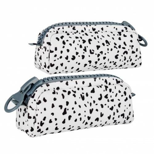 Odporny materiał, podszewka, która chroni przed zabrudzeniem i jest łatwa w czyszczeniu, mocny zamek błyskawiczny, bardzo pojemny, kształt saszetki. Piórnik Dalmatyńczyk w kolorze biało-czarnym w kształcie saszetki z dużym zamkiem błyskawicznym. Pomieści niezbędne artykuły piśmiennicze i nie zajmie dużo miejsca w plecaku (nawet mini) oraz worku.
