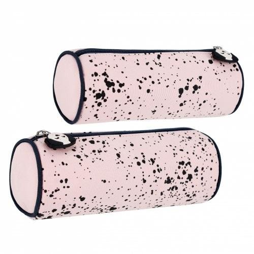 Odporny materiał, podszewka, która chroni przed zabrudzeniem i jest łatwa w czyszczeniu, mocny zamek błyskawiczny, bardzo pojemny. Piórnik w kolorze różowo-czarnym w kształcie tuby z zamkiem błyskawicznym. Pomieści niezbędne artykuły piśmiennicze i nie zajmie dużo miejsca w plecaku. Wnętrze wyściełane mocną podszewką.