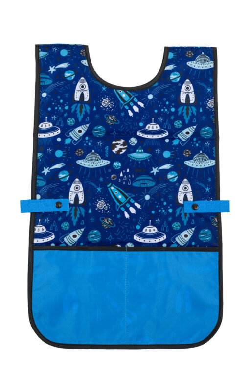 V letošní kolekci nabízíme také nový střih zástěrky na výtvarnou výchovu, která je zapínatelná na praktické druky.Dítě nemusí zástěrku zavazovat na zádech, druky si snadno nastaví velikost kolem pasu a zároveň má díky novému střihu chráněnou větší část těla. Zástěrka je vybavena dvěma kapsami a je snadno omyvatelná.