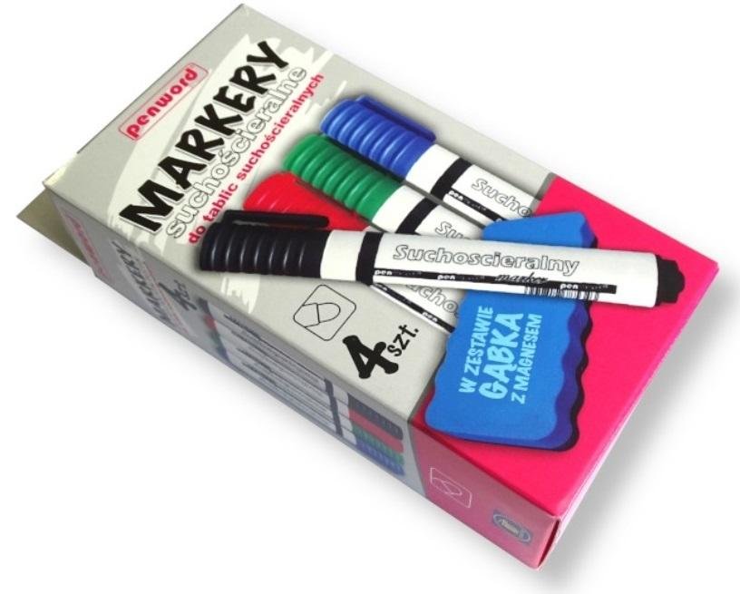 Markery suchościeralne 4 kolory + gąbka