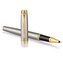 Połączenie smukłej, nowoczesnej sylwetki i stylowych, wyrafinowanych wykończeń o wysokiej jakościSzczotkowany metal z poprzecznym szlifem i złotymi wykończeniami oraz rozpoznawalny klip marki PARKER w kształcie strzałyKońcówka pióra kulkowego bez wysiłku zapewnia stały, równomierny dopływ tuszu...