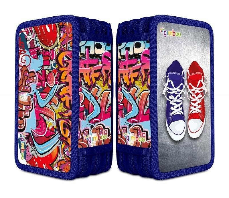 piórnik szkolny z kolekcji GIMBOO 2024 posiada 3 komory zestaw zawiera wyposażenie (linijkę, ekierkę, 3 szt. długopisów, ołówek, gumkę, temperówkę, 16 szt. flamastrów, 16 szt. kredek) prečítať celé