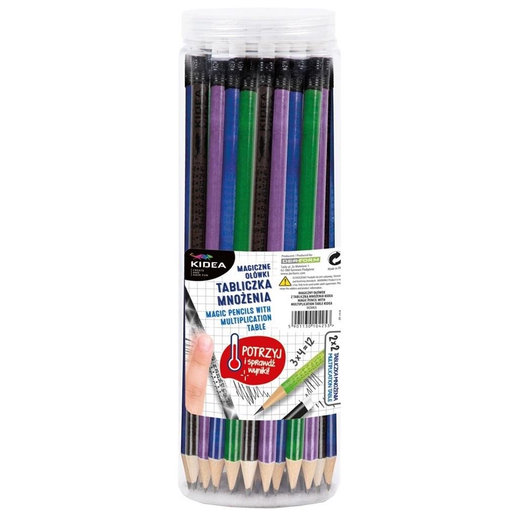 Zaczarowany ołówek z gumką i ukrytą tabliczką mnożenia to wyjątkowa pomoc dydaktyczna dla dzieci zaczynających swoją przygodę z matematyką. Aby odkryć wyniki mnożenia liczb od 2 do 9 wystarczy potrzeć jego powierzchnię palcem. Z pomocą ołówka dziecko może sprawdzić swoją wiedzę podczas rozwiązywania równań. Ołówek będzie również idealny do rysowania, szkicowania lub pisania.