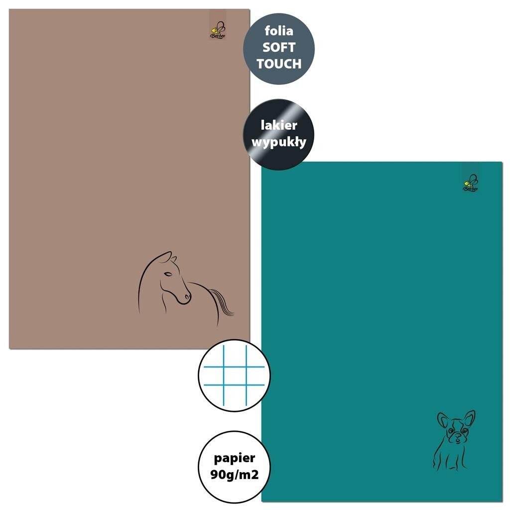 Zeszyt formatu A4, okładka folia soft touchlakier wybiórczy32 kartki, papier 90g/m2do szkoły, dla studenta i do biurakolorowe wzornictwo i w zależności od modelu zdobienie przy pomocy lakieru wybiórczego, brokatowania lub folii metalicznychkolory przedstawione na zdjęciu mogą nie odzwierciedlać w...