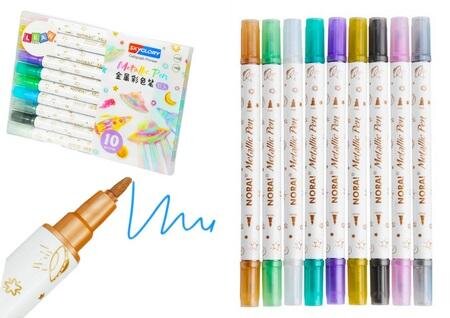 Pisaki Metaliczne Flamastry Kolorowe Dwustronne Zestaw 10 ele. Zestawem 10 pisaków metalicznych, które zapewniają niesamowity efekt błysku i elegancji na papierze. Każdy pisak jest okrągły, co gwarantuje wygodne i precyzyjne rysowanie. Zestaw oferuje aż 10 różnych kolorów metalicznych, które...