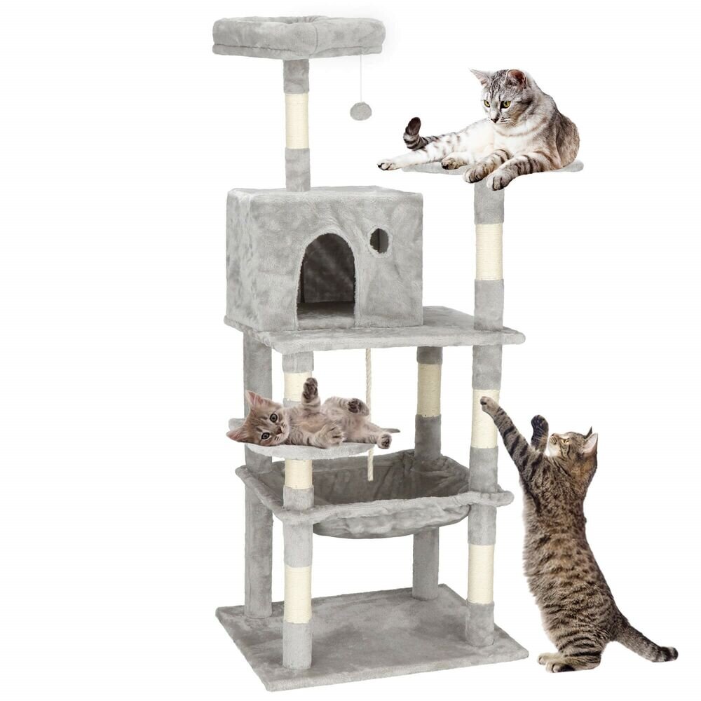 Skvěle vybavené víceúrovňové kočičí škrabadlo s šesti patry. Nabízí stabilní a odolnou konstrukci, sisalové tyče, příjemný sametový potah, útulný domeček s okénkem, závěsné houpací křeslo, kruhovou postel na vrcholu a hračky pro zábavu. Ideální pro hraní, šplhání a odpočinek.Víceúrovňové s 6...