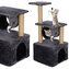 Víceúrovňové kočičí škrabadlo se čtyřmi patry, měkkým potahem a stabilní konstrukcí. Obsahuje sisalové tyče pro škrábání, hračku myšku na elastickém provázku, útulný domeček, tunel a odpočívadla, ideální pro šplhání, hru i odpočinek.Víceúrovňové se 4 patryŠkrabadlo pro kočky Domeček s tunelem 4...
