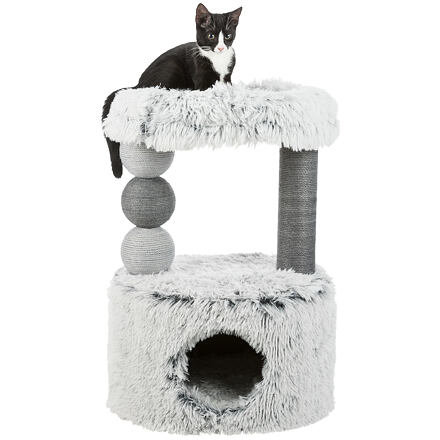 Škrábadlo HARVEY, kukaň, 2 sloupky, odpočívadlo 73cm, dlouhovlasý plyš, šedá