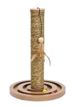 Škrabadlo Brigitte je skvělý kus škrabacího nábytku pro hravé kočky. Do dřevěné základní desky jsou zakomponovány dvě kuličkové dráhy, ve kterých se kočka může pohybovat a pronásledovat dvě barevné dřevěné kuličky. Další dřevěná koule je připevněna na laně v horní části sloupu jako pohyblivá...