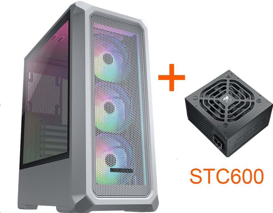 COUGAR PC skříň ARCHON 2 Mesh RGB White Mid Tower Mesh Front Panel 3 x ARGB Fans 3mm TG Left Panel + COUGAR PSU STC600