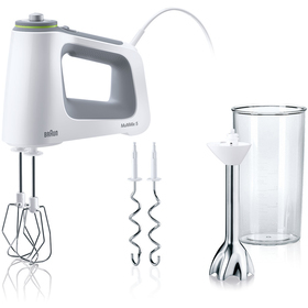 Příslušenství: 2 šlehací metly, 2 hnětací metly, nerezová mixovací noha s patentem PowerBell, 600ml mixovací nádoba.