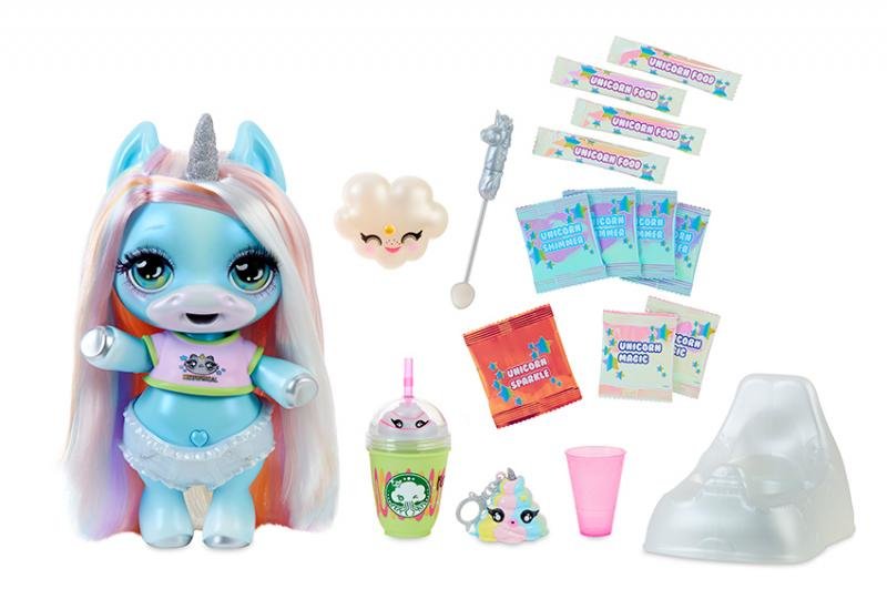Jednorožec s kouzelným bříškem. Pokaždé, když ho nakrmíš a posadíš ho na třpytivý nočník, vytvoří překvapení – jednorožčí hovínko (barevný sliz).