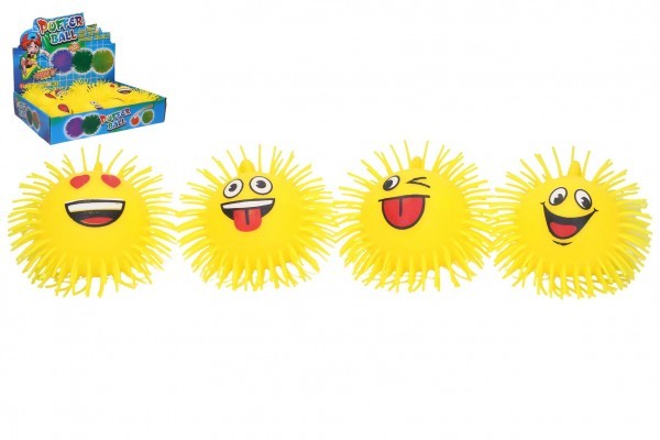 Míček smajlík mačkací chlupatý antistresový svítící silikon 10cm 4 druhy 12ks v boxu