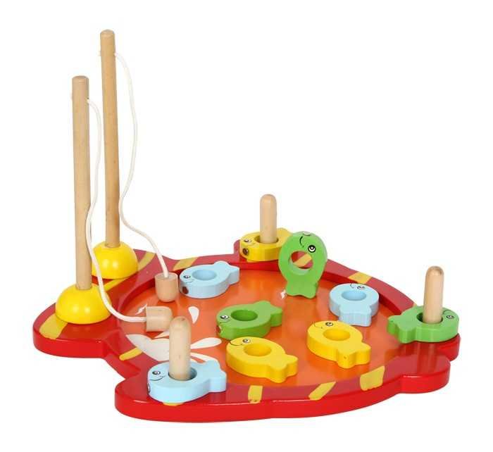 Ulovit těchto 6 barevných ryb není tak jednoduché, jak to vypadá, je potřeba mnoho trpělivostí a malý rybář tak trénuje zručnost. Chycené ryby se navlékají na postranní týče a 14,5 cm dlouhé rybářské pruty se pro příští hru nasadí do žlutých držáků.Německá firma Legler zaměřená na výrobu...