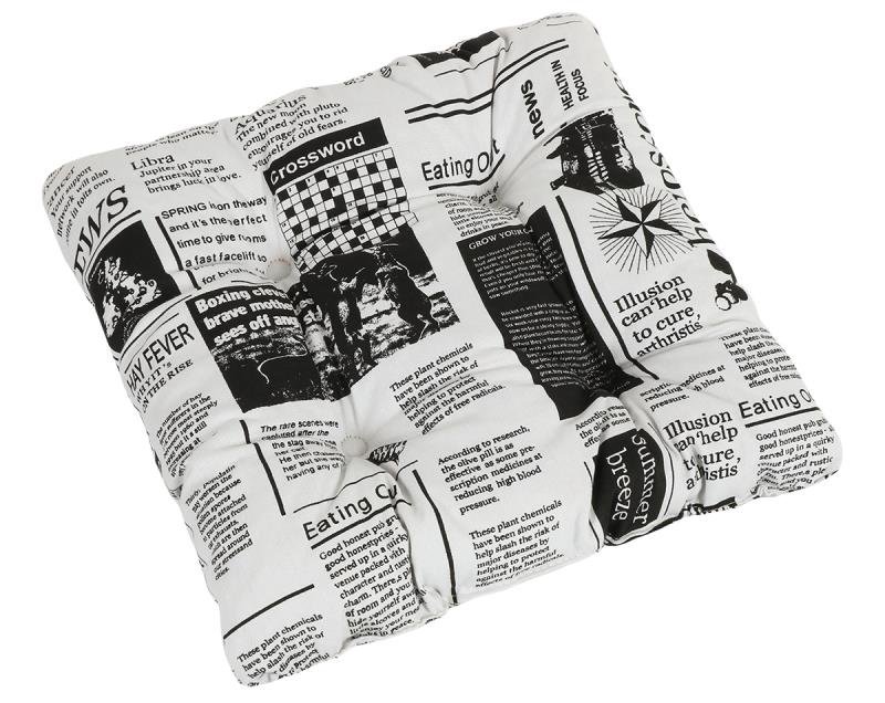 Sedák BERTA prošívaný - noviny černo bílé - 38x38 cm, prošívaný