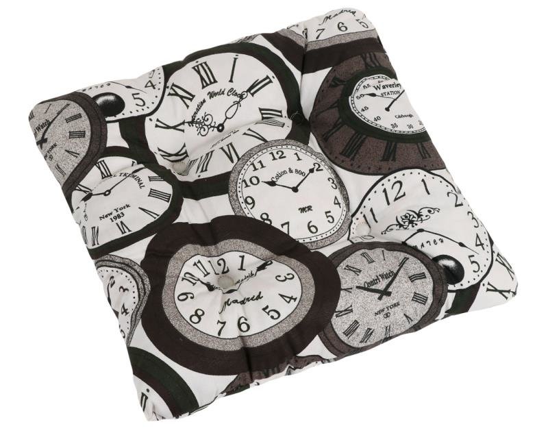 Sedák BERTA prošívaný - hodiny hnědé - 38x38 cm, prošívaný