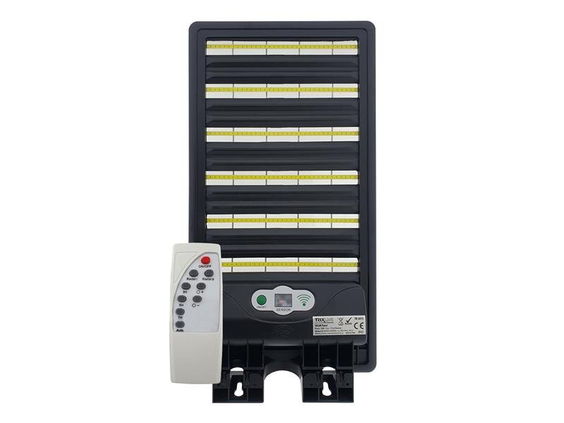 Solární pouliční lampa TR 381S Trixline 20W s pohybovým senzorem na dálkové ovládání. Solární panel je součástí zadní strany světla. Doporučujeme instalovat na stěnu ve výšce cca 3m. Výhodou je krytí IP65 což zaručuje ochranu proti tryskající vodě ze všech úhlů a odolnost proti vniknutí prachu. Vhodné pro osvětlení zahrady, chodníku rodinného domu nebo příjezdových cest. Je důležité, aby solární panel byl vystaven přímému slunci po celý den, vyhněte se natočení panelů k budovám, stromům a jiným překážkám.