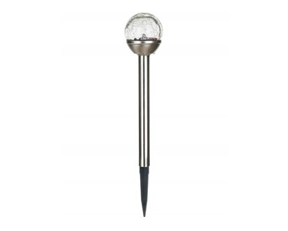 Solární nerezová lampa - o výšce 33,5 cm a skleněným dekoračním stínidlem ve tvaru koule s pavučinovým dekorem o průměru 6 cm, světelný zdroj - 1 bílá LED. Solární lampa je funkční a zároveň dekorační součást do každé zahrádky. IP 44. prečítať celé