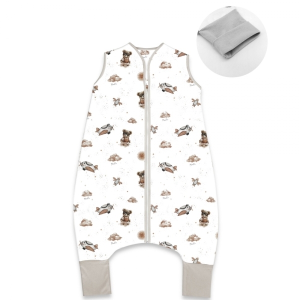 Teplejší spací vak s nohavičkami, bavlna, Méďa pilot - bílá, béžová, vel. M