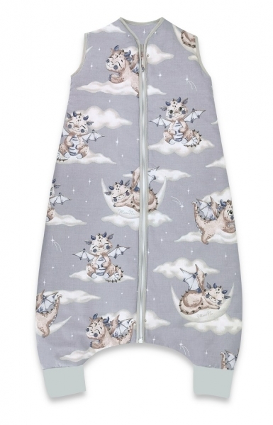 Spací vak s nohavičkami, oteplený, 103 cm, vel. M, Dráček Mráček, šedá/modrá