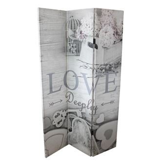Krásný paravan - LOVE. Paravan má šířku 120,6 cm, tloušťku 2 cm, výšku 180 cm. Barva : šedá. Materiál : kombinace plátno, dřevo. prečítať celé