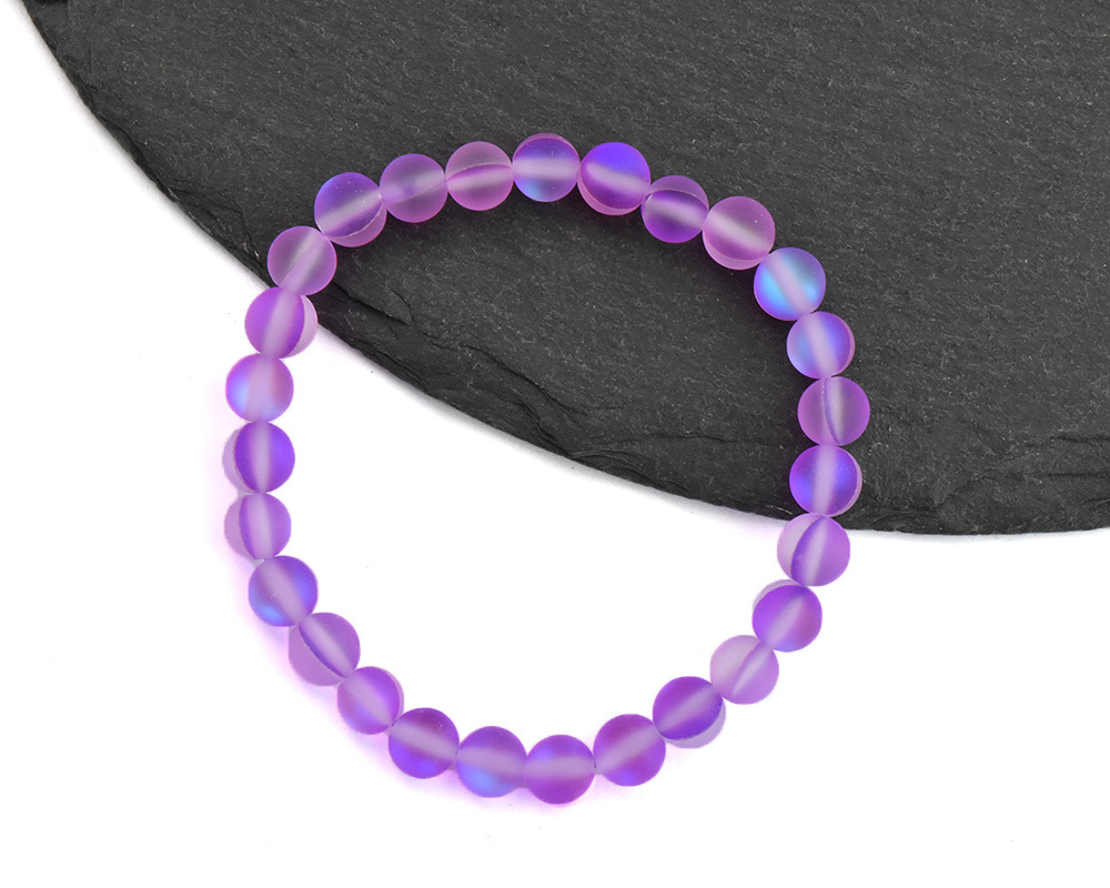 Opalit je syntetický kámen. Jde o uměle vyrobené opálové sklo, které svými světelnými odlesky napodobuje přírodní opálové hmoty (gely). Svým vzhledem připomíná měsíční kámen. Charakterizují ho mléčné a krásné barevné odstíny. Mezi nejoblíbenější patří bílá, růžová, modrá, tyrkysová, šedá a fialová.Dětský náramek s kuličkou 6 mm. Délka náramku je cca 16 cm.