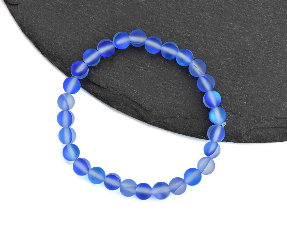 Opalit je syntetický kámen. Jde o uměle vyrobené opálové sklo, které svými světelnými odlesky napodobuje přírodní opálové hmoty (gely). Svým vzhledem připomíná měsíční kámen. Charakterizují ho mléčné a krásné barevné odstíny. Mezi nejoblíbenější patří bílá, růžová, modrá, tyrkysová, šedá a fialová.Dětský náramek s kuličkou 6 mm. Délka náramku je cca 16 cm.