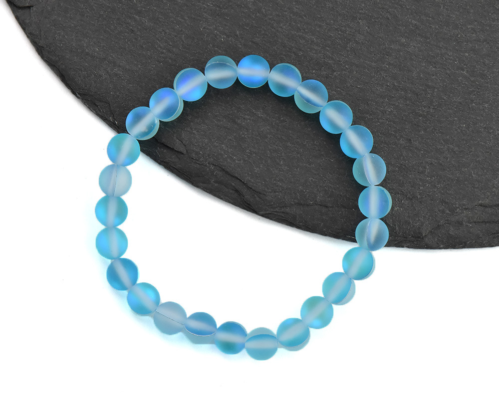 Opalit je syntetický kámen. Jde o uměle vyrobené opálové sklo, které svými světelnými odlesky napodobuje přírodní opálové hmoty (gely). Svým vzhledem připomíná měsíční kámen. Charakterizují ho mléčné a krásné barevné odstíny. Mezi nejoblíbenější patří bílá, růžová, modrá, tyrkysová, šedá a fialová.Dětský náramek s kuličkou 6 mm. Délka náramku je cca 16 cm.