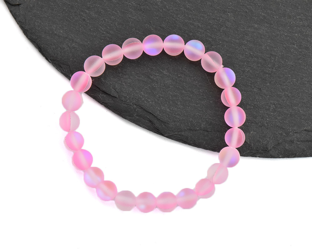 Opalit je syntetický kámen. Jde o uměle vyrobené opálové sklo, které svými světelnými odlesky napodobuje přírodní opálové hmoty (gely). Svým vzhledem připomíná měsíční kámen. Charakterizují ho mléčné a krásné barevné odstíny. Mezi nejoblíbenější patří bílá, růžová, modrá, tyrkysová, šedá a fialová.Dětský náramek s kuličkou 6 mm. Délka náramku je 16 cm.