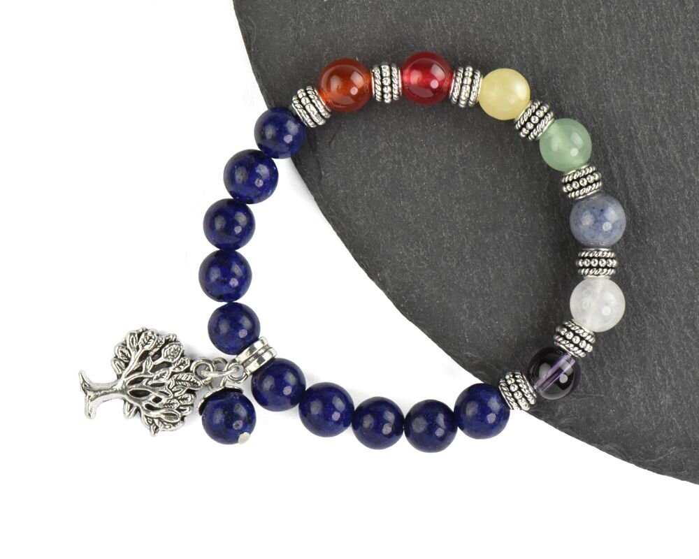 Strom života symbolizuje propojení všeho živého, růst, sílu a nesmrtelnost. Kořeny stromu představují spojení s minulostí a předky, zatímco větve sahají k nebi a symbolizují budoucnost a nové začátky. Velikost: univerzální Průměr jedné kuličky: 8 mm Materiál: kov, plast, minerály, kámen
