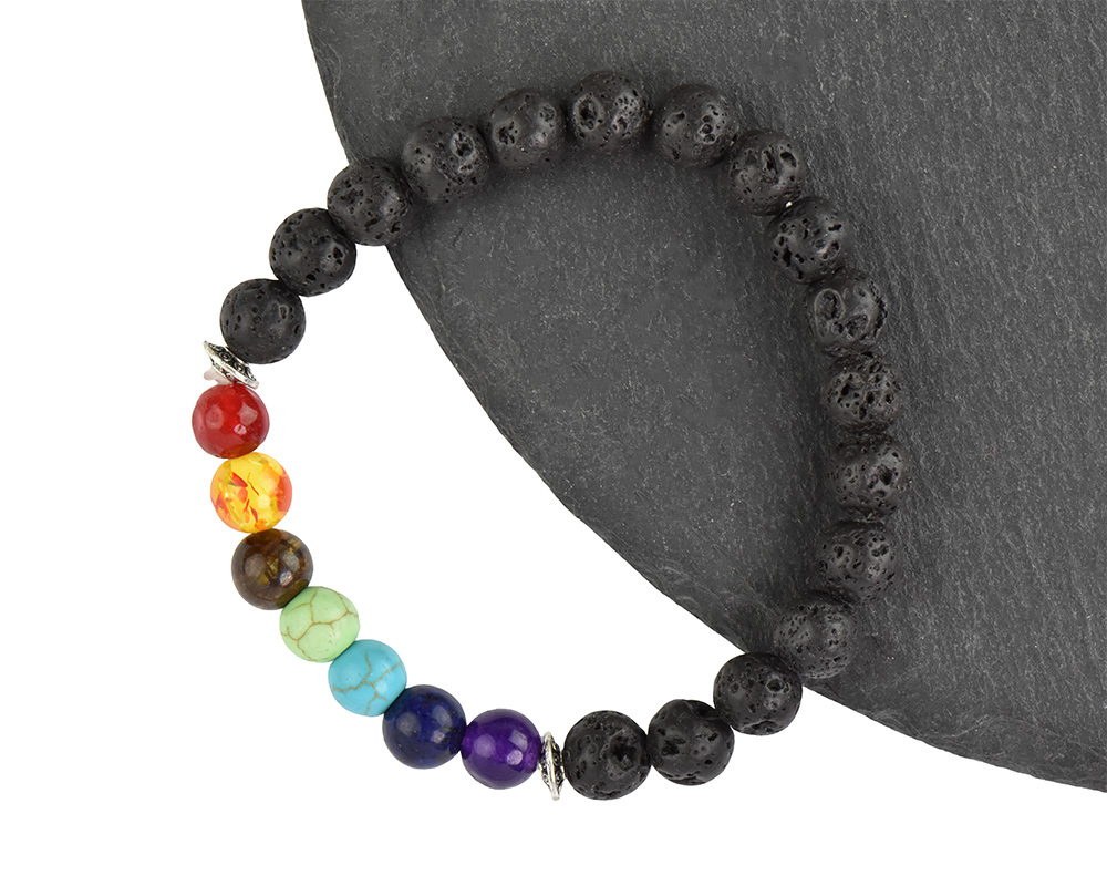 Lávový kámen - je kamenem se silnou pozitivní energií. Dodává sebejistotu, vitalitu a životní vyrovnanost. Nese v sobě sílu sopky. Zmírňuje záněty, otoky a bolesti. Posiluje imunitu a detoxikuje tělo. Harmonizuje své okolí a chrání nás před špatnou náladou.Velikost: univerzální Průměr jedné kuličky: 8 mm Materiál: lávový kámen, plast