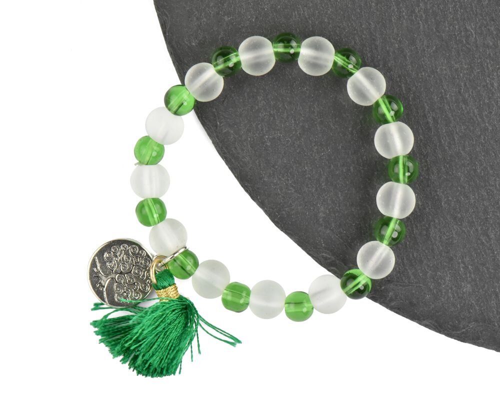 Náramek zelený, třásně, Strom života