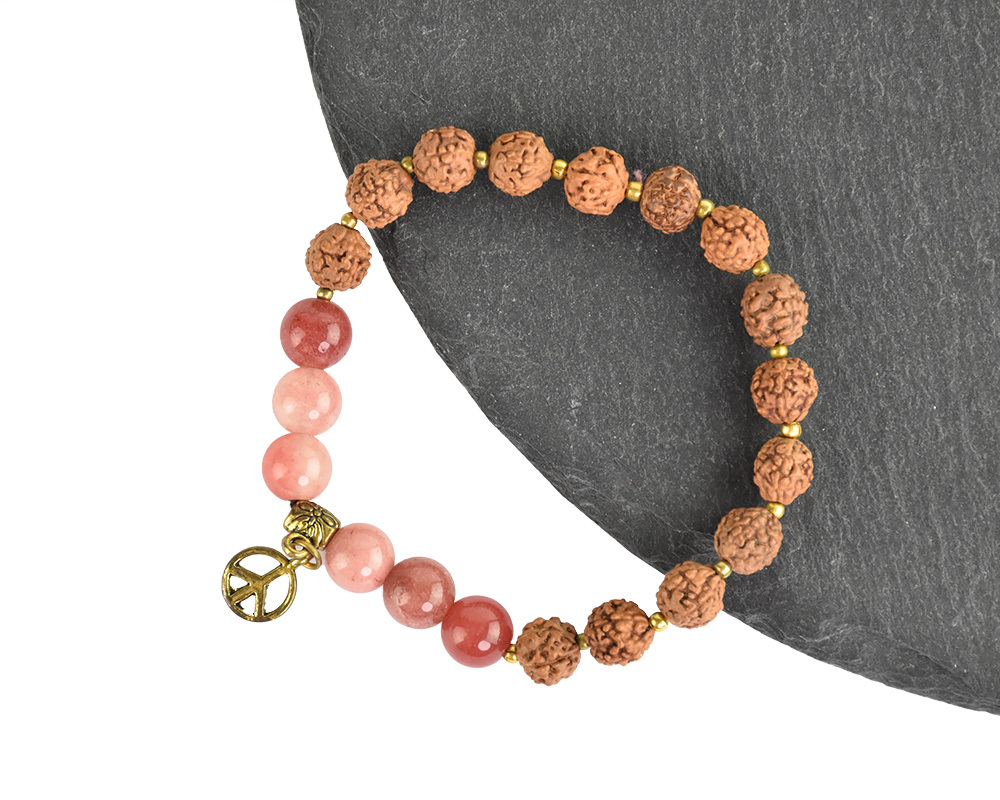 Náramek Japa Mala Rudraksha Peace - růžové korálky
