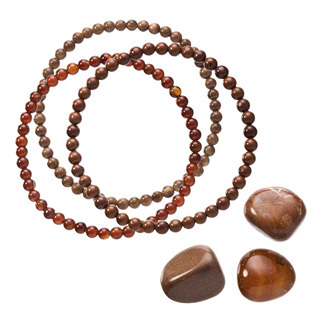 Světle hnědé až načervenalé barvy s luxusními zlatavými odlesky jsou náramky z přírodních minerálních kamenů. Navíc blahodárně působí na duševní a fyzickou rovnováhu. Každý, ze tří náramků, je vyroben z kamenů, které mají různé vlastnosti a energie. Popis každého druhu si můžete přečíst níže....