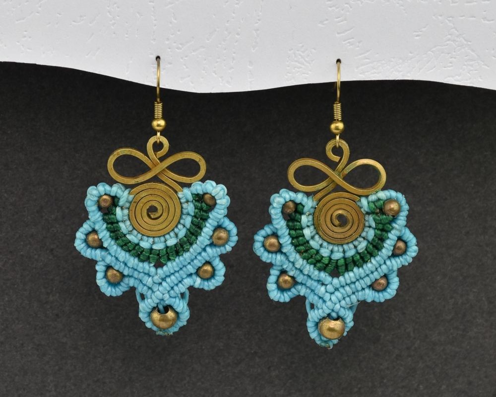 Ručně vyrobené drhané náušnice z voskovaného provázku, na kovovém základu, dozdobené drobnými preličkami.Každý pár těchto naušnic je jedinečný originál.Materiál: kov, voskovaná bavlnkaRozměry: 5 x 3,5 cm prečítať celé