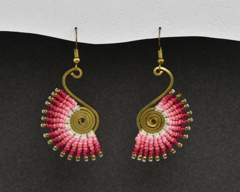 Ručně vyrobené drhané náušnice z voskovaného provázku, na kovovém základu, dozdobené drobnými preličkami.Každý pár těchto naušnic je jedinečný originál.Materiál: kov, voskovaná bavlnkaRozměry: 4,5 x 3,5 cm prečítať celé