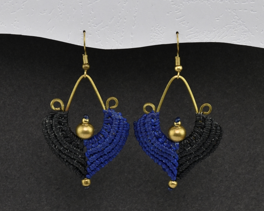 Ručně vyrobené drhané náušnice z voskovaného provázku, na kovovém základu, dozdobené drobnými preličkami.Každý pár těchto naušnic je jedinečný originál.Materiál: kov, voskovaná bavlnkaRozměry: 5 x 3,5 cm prečítať celé