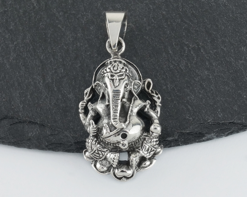 Stříbrný přívěsek Ganesh. Přívěsek je označen puncem ryzosti. Ryzost: Ag 925/1000 Celková délka: 34 mmŠířka: 16 mm Hmotnost: cca 6,1 g Upozornění: všechny stříbrné šperky lze zakoupit pouze přes e-shop. Jsme registrováni u puncovního úřadu. Veškeré informace naleznete zde.