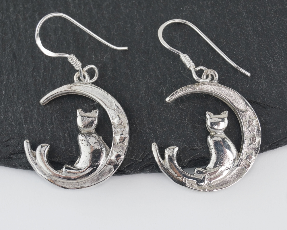 Stříbrné náušnice s háčkem - Kočka na měsíciNáušnice jsou označeny puncem ryzosti. Ryzost: Ag 925/1000 Délka: 21 mm (měřeno od háčku)Průměr: 18 mm Hmotnost: cca 2,3 g/kus Upozornění: všechny stříbrné šperky lze zakoupit pouze přes e-shop. Jsme registrováni u puncovního úřadu. Veškeré informace naleznete zde.